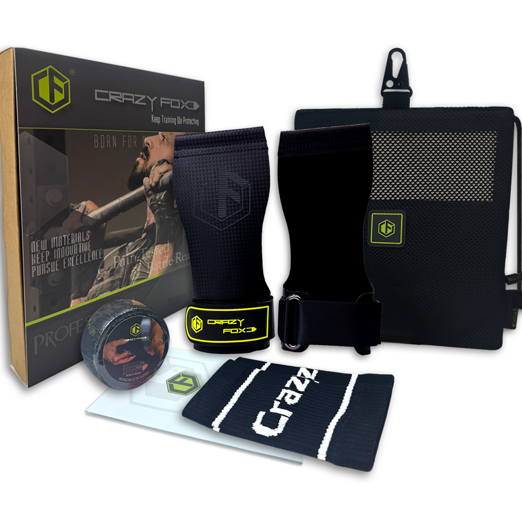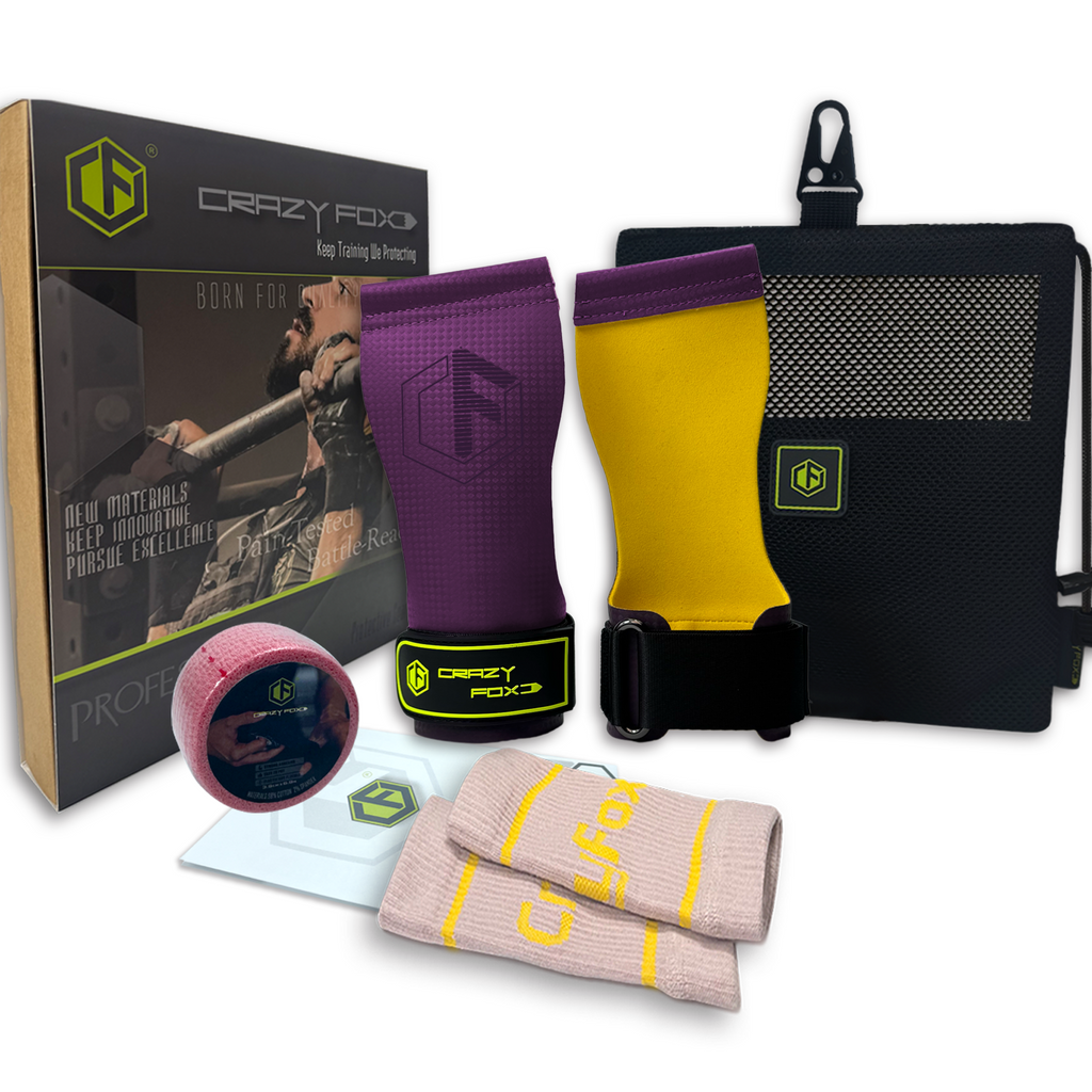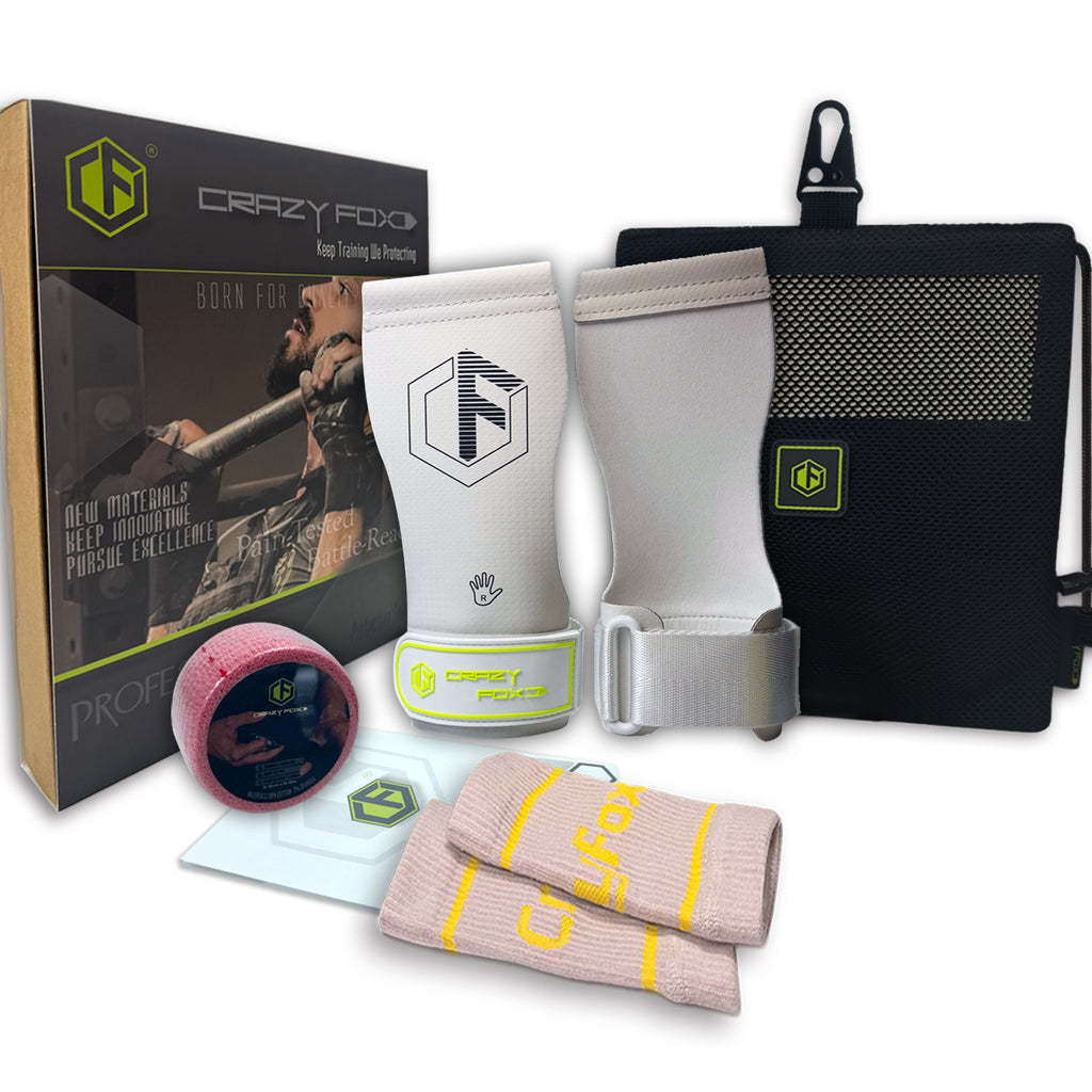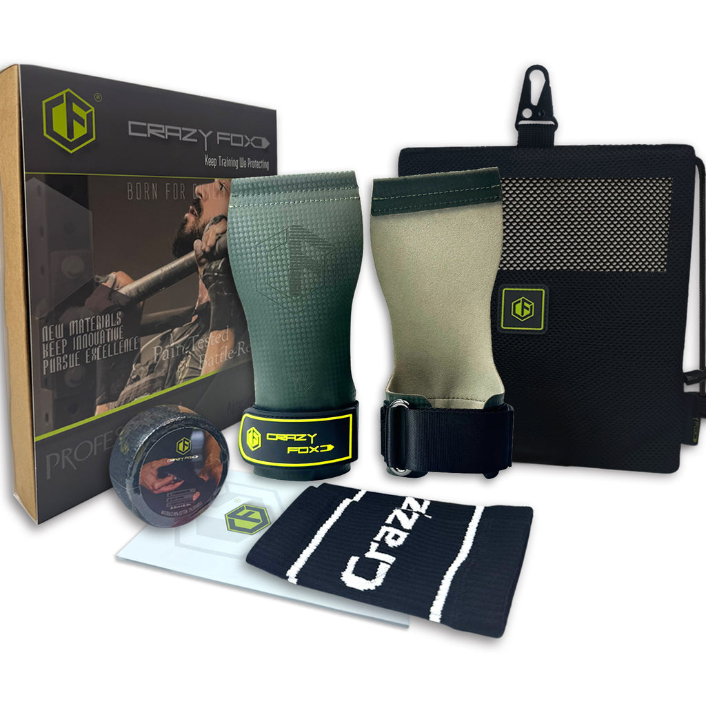 Crazy Fox Hypalon Hand Grips Set Anti-Slip Chalk Free Magnesium-Free Velites Material Gymnastices Grips Weightlifting Calleras for Pull Ups High Intensity Workouts Fitness Cross Training
