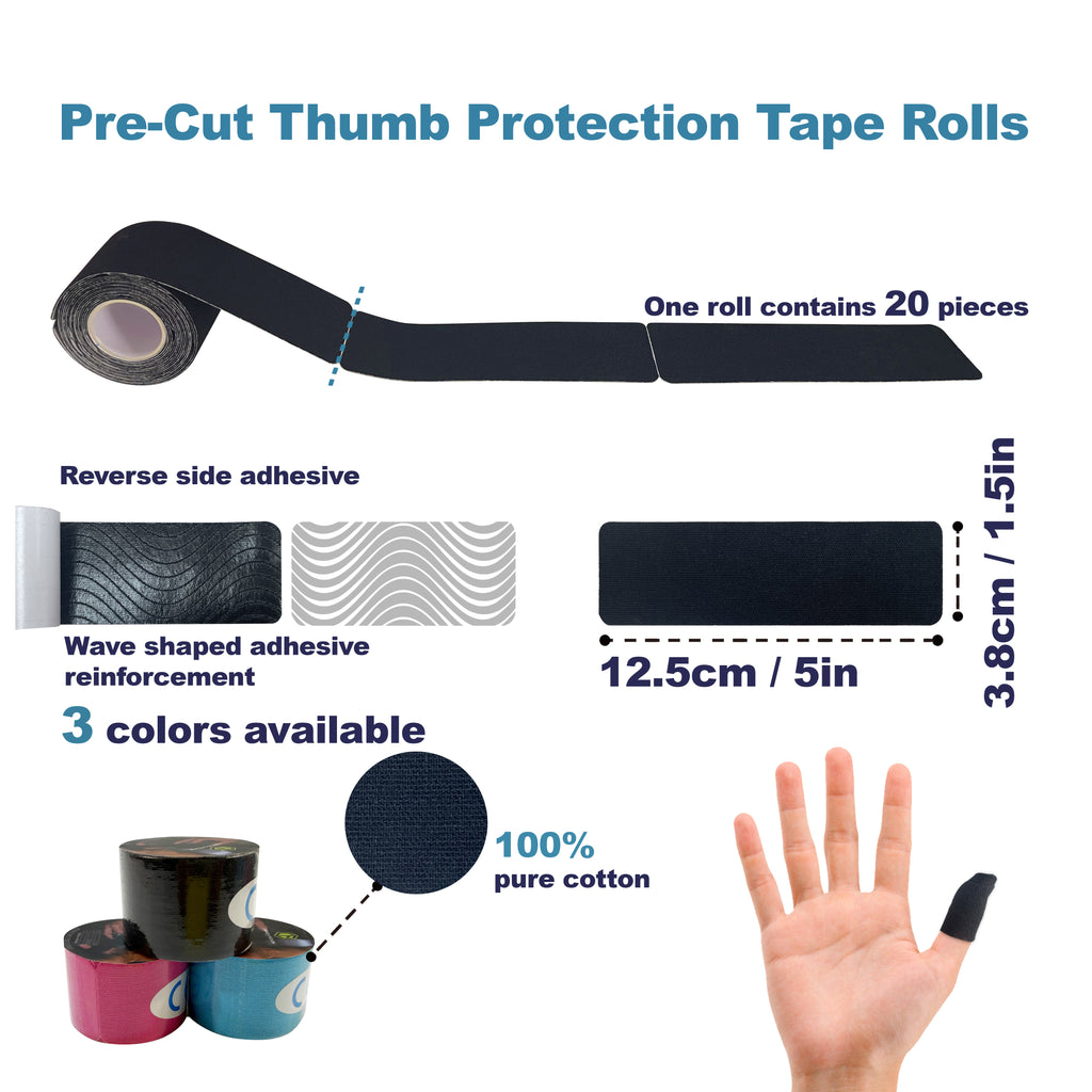 Crazy Fox Pre-cut Thumb Protection Tape Rolls Premium Adhesive Finger Thumb Grip Tape 2.5cm 3.8cm 5cm for Weightlifters Fitness Cross Training